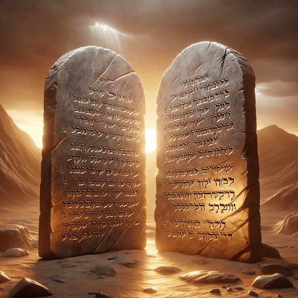 Os Dez Mandamentos foram dados por D’us a Moshê (Moisés) em duas tábuas de pedra, que segundo a tradição dos sábios de Israel, eram de safira. Um dos motivos para essa divisão é que há uma relação intrínseca entre os ditames da tábua da direita e os da esquerda. A ordem na qual os Dez Mandamentos foram gravados nas tábuas tem um significado de máxima importância. Os Sábios ensinam que o primeiro Mandamento está relacionado ao sexto, o segundo ao sétimo e assim por diante. Segue a ordem dos Mandamentos em cada tábua: