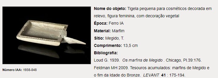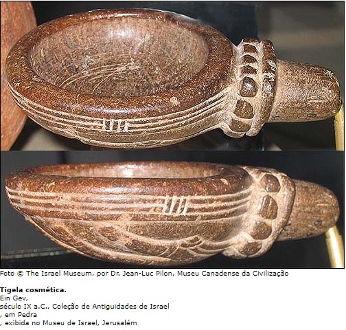 Creio que nem todas as mulheres tinham acesso a esses produtos, sendo mais comum no meio das mulheres “ricas”, não deveria ser nada fácil fabricar. Mas uma coisa é certa, em toda Ysrael foram encontrados vasos, potes, utensílios para perfumes, cosméticos e “maquiagem”.