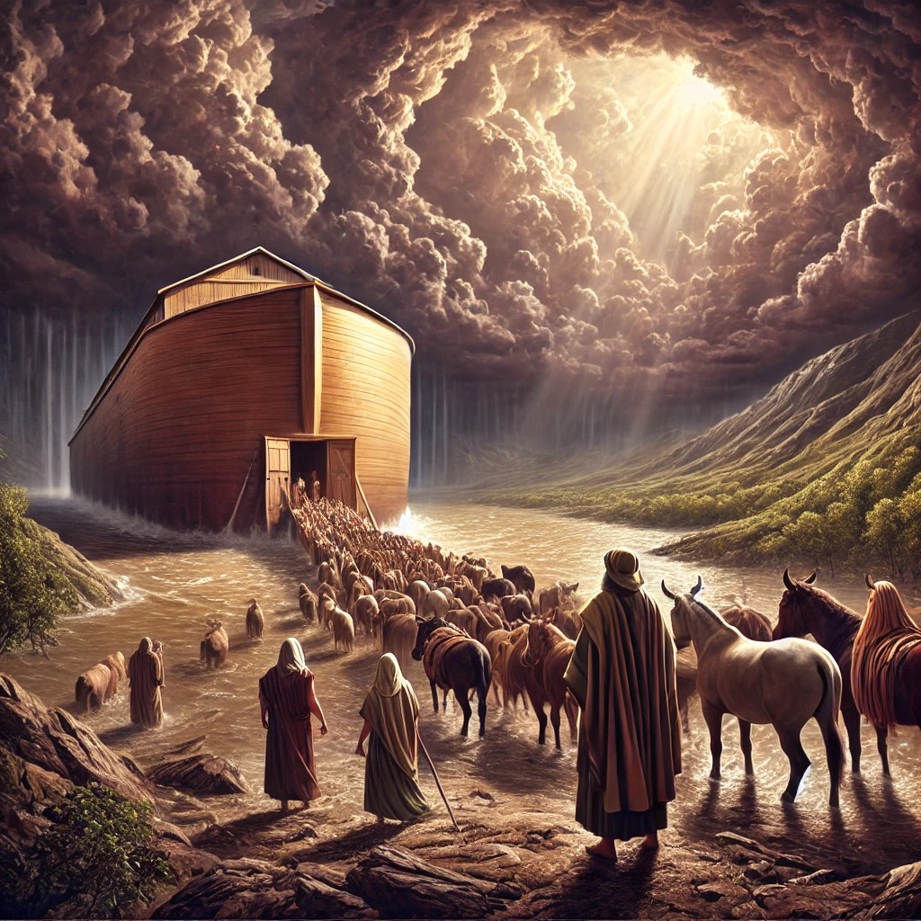 Olhando a imagem acima, e sabendo que não foi exatamente dessa forma que aconteceu, é triste pensar que quase que unânime toda a terra na era de Noach rejeitou ao Santo Bendito Seja Ele. Tiveram a oportunidade de se arrepender dos pecados, fazer teshuva, ouvir a voz de D’us, que atravéz do profeta Noach, foi enviado mensagem de arrependimento. Foi então uma multidão de animais que adentrou a arca e não homens – Os homens pereceram TODOS!