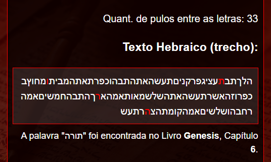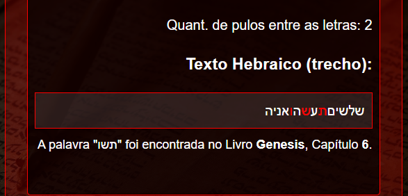 Deixa antes eu contar um segredinho, D’us é bom e justo, e com certeza se houvesse um arrependimento sincero, D’us teria poupado o povo, mas… com homens “valentes e poderosos” que se sentia D’us, gigantes poderosos, dominadores, jamais se curvaram e obedeceram, pelo contrário, só transgressão. A Teshuva é a arma mais poderosa que nos coloca no foco da luz, e lá, achar a corda (esperança) para nos agarrar ao Eterno. E Teshuva vai aparecer nesse capitulo de forma codificada, veja abaixo: