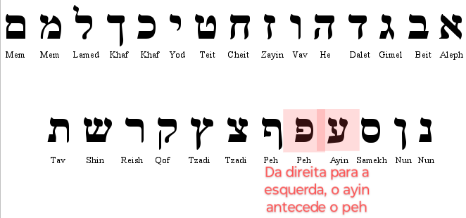 Em hebraico, temos a seguinte expressão: Eynaim Ramot (עינים רמות) que significa ollhos exaltados. Eynaim é o plural de “ayn” (עין) que significa “olho”, e também a décima sexta letra do alfabeto hebraico, e está ligada ao que vemos e fazemos, seja por meio do material ou espiritual. Curiosamente a letra Ayn (עֵ), antecede a letra Pe (פ) que representa uma boca, e isso nos trás um belo ensinamento: “Não devemos falar algo, se não tivermos a certeza que vimos”