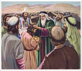 E disse Adonay para Moshê: pegue para você Yehoshua, filho de Num, homem que há mover nele, e incline tua mão sobre ele. Faça-o comparecer diante do sacerdote Elazar e de toda a comunidade e, diante deles, dê-lhe uma comissão. E dê do teu vigor (autoridade) para ele, para que toda obedeçam toda congregação dos filhos de Israel (…) Moshê fez como Adonay lhe ordenou. Ele tomou Yehoshua e o colocou diante do sacerdote Eleazar e diante de toda a comunidade. E impôs-lhe as mãos e o comissionou, como Adonay havia falado por meio de Moshê.(Bamidbar 27:18-20;22)